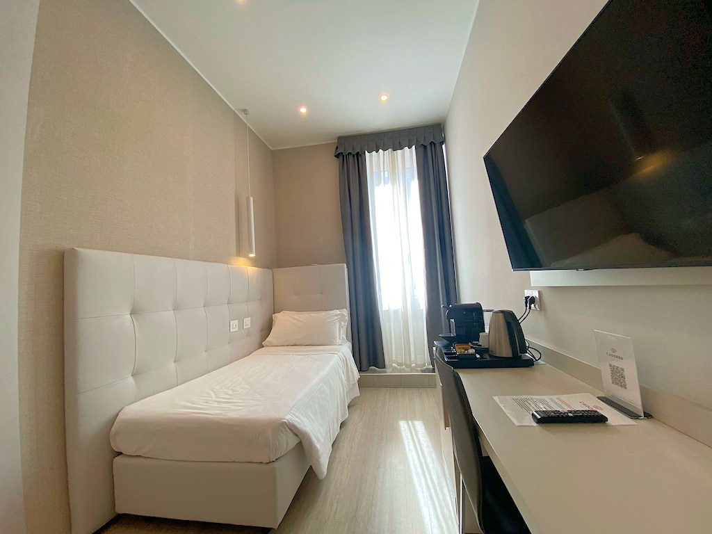 The Single Rooms of the Milan´s CLH have different sizes and shapes and are equipped with new and very comfortable mattresses, a minibar and a bathroom with shower, complete with complimentary toiletries.