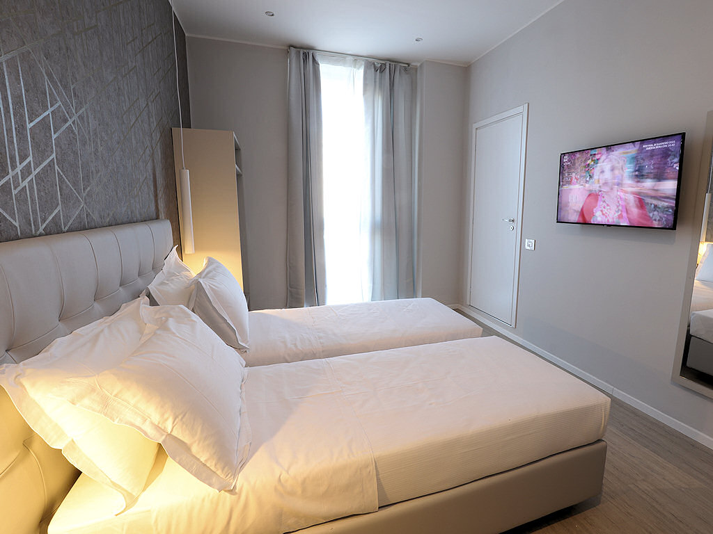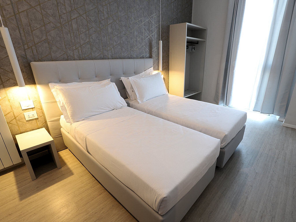 The Twin Beds Rooms of the Milan´s CLH have different sizes and shapes and are equipped with new and very comfortable mattresses, a minibar and a bathroom with shower, complete with complimentary toiletries.